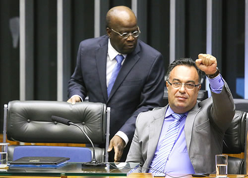 O deputado André Vargas (PT-PR) é mesmo um homem de comportamento bastante heterodoxo. Vice-presidente da Câmara, ele também é vice-presidente do Congresso. É aquele senhor, vocês devem se lembrar, que, na abertura do ano legislativo, na presença do ministro Joaquim Barbosa, presidente do Supremo e convidado para a solenidade, ergueu o punho esquerdo, cerrado, um gesto que virou símbolo dos mensaleiros.