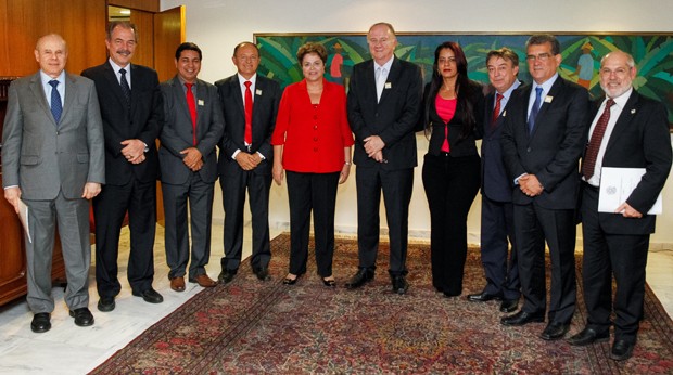 Eles foram ao Palácio do Planalto entregar uma carta de reivindicações à presidente, formulada na Marcha dos Prefeitos, organizada pela Confederação Nacional dos Municípios (CNM).