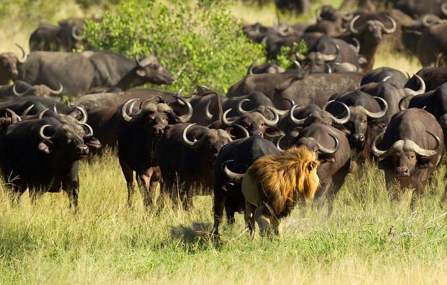 Gregg afirma que o leão tinha passado por um confronto com outros leões, horas antes de confrontar a manada de búfalos. Pelo menos 20 búfalos pertenciam à manada.
